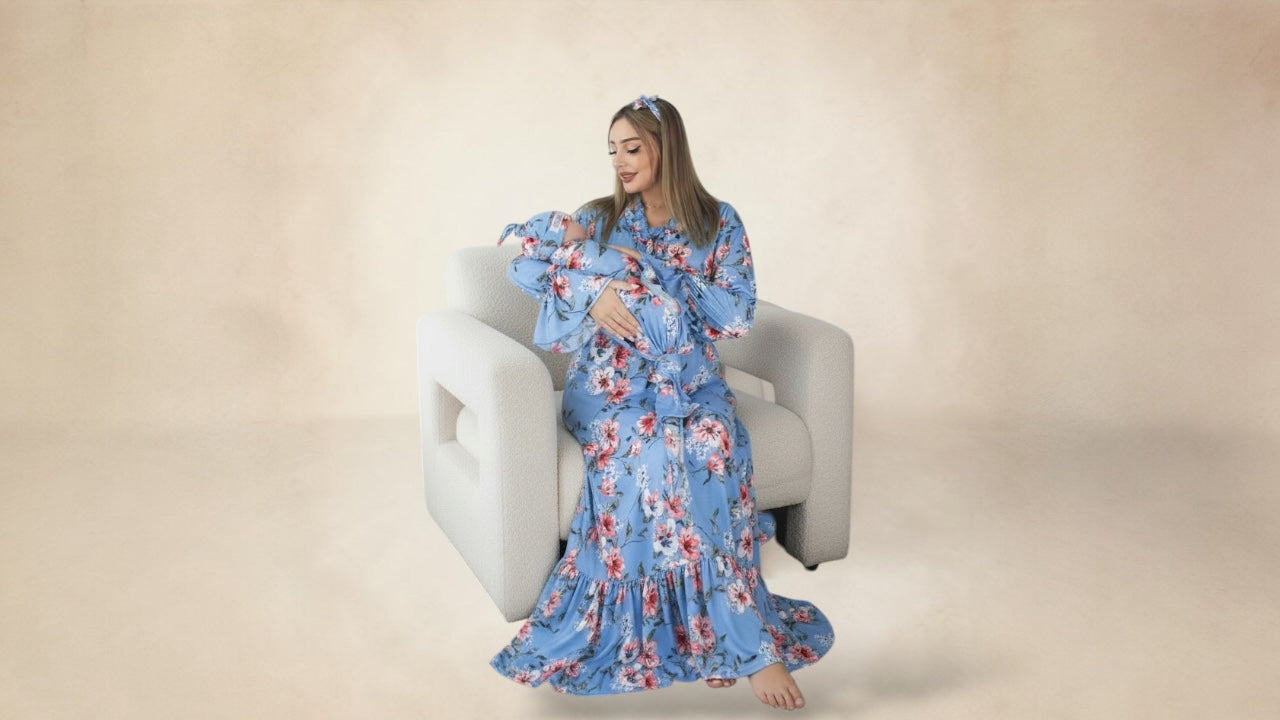 BABY BLUE FLORAL LULU SLEEVELESS MATERNITY AND NURSING GOWN
