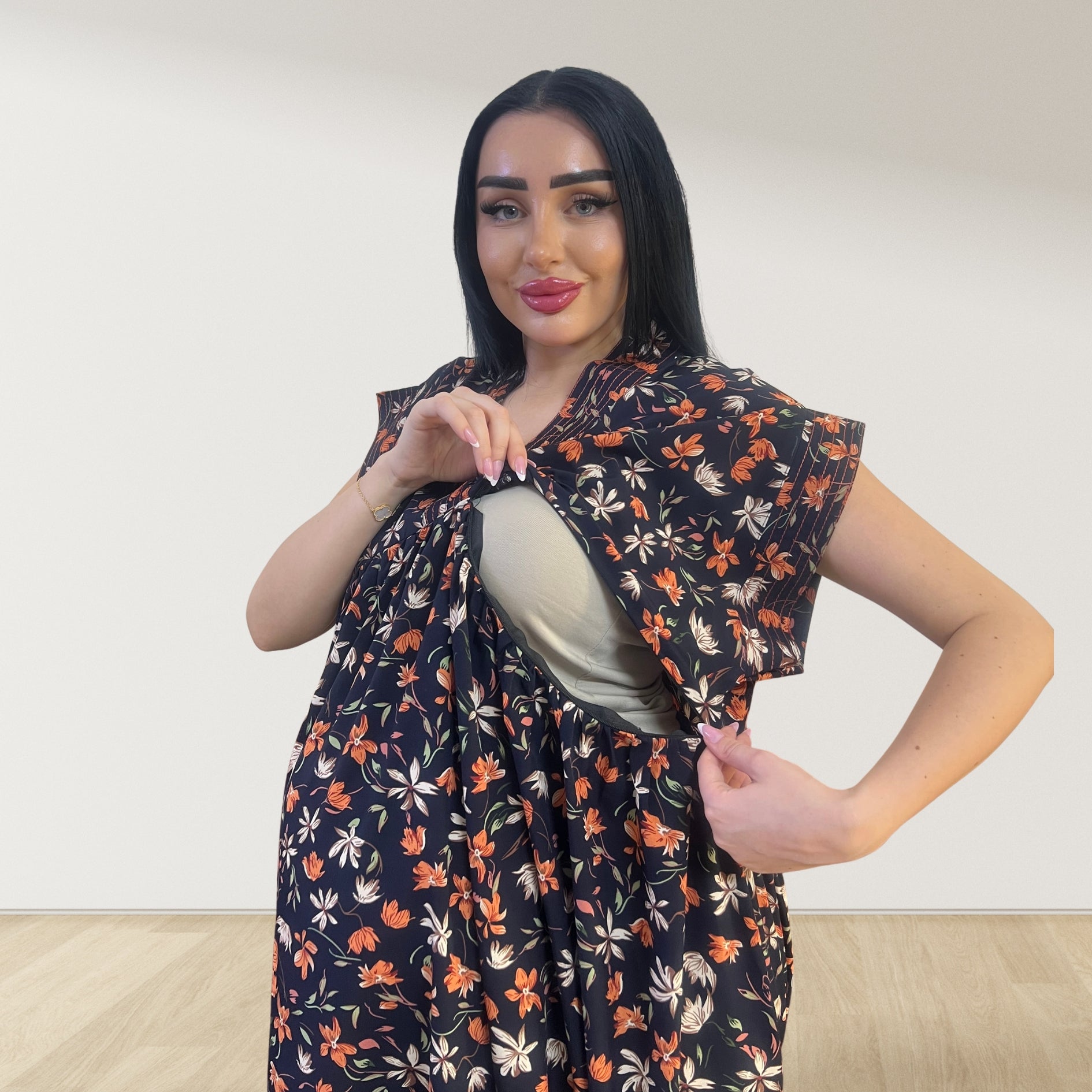 Mommy and Me maternity and nursing sleeveles zip dress with Matching chiffon hijab.